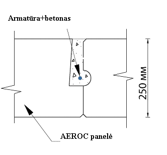 Kaip matyti brėžinyje, ant išiilginių perdangos šonų išdėstyti skirtingų dydžių grioveliai. Montuojant perdangas būtina atkreipti dėmesį, kad visos perdangos būtų dedamos lygiai, perdangų sandūroje dideli grioveliai turi sutapti su mažais, kaip parodyta brėžinyje. Užbaigus perdangų montavimą į siūles ir perdangos galuose sudėti atitinkamo dydžio armatūrą, o siūlės užpildomos betonu, tokiu būdu suformuojam monolitinį sutvirtinimo žieda, kuris sustiprina AEROC perdangos panelės kaip vientisą ir tvirtą konstrukciją. Armatūros diametrą ir jos išdėstymą sprendžia projektuotojas. Perdangos siūlėse galima įmontuoti elektros instaliaciją ir vandentiekio vamzdžius.