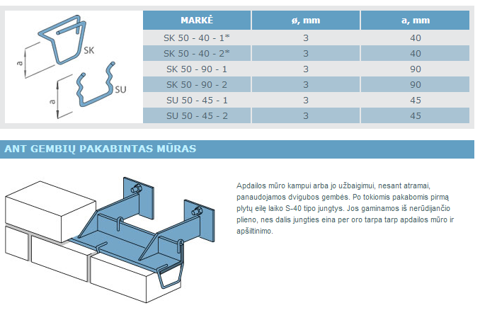Dėl prekės: "Jungtys plytinėms sąramoms, horizontaliajam dėjimui "