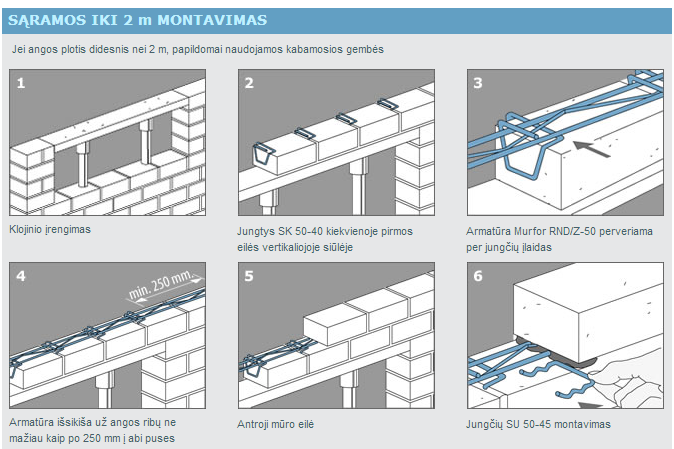 Plytinės sąramos. Horizontalusis dėjimas. Angų iki 2 m konstrukcinis sprendinys