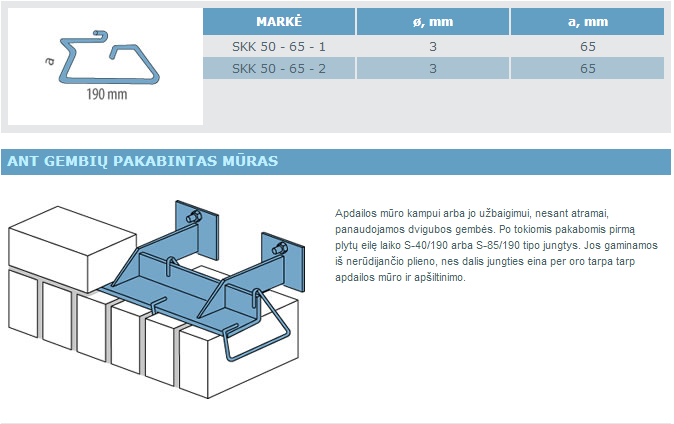 Statmenoji sąrama. Kitaip nei vertikalus, statmenas plytų dėjimas atliekamas 90 laipsnių kampu fasado link. Toks dėjimu būdas turi pranašumą, leidžiantį paslėpti už apdailos mūro esantį termoizoliacinį sluoksnį. Skirtingai nei jungtys SK, kurių padėtis ant plytos yra fiksuota, jungtys SKK taip nefiksuojamos. Pasirenkant jungties SKK padėtį ant plytos galima suformuoti sąramą fasado plokštumoje arba su įvairaus dydžio iškyšą. Įrengiant tokias sąramas naudojamos jungtys SKK 50-65 ir SU 50-45.