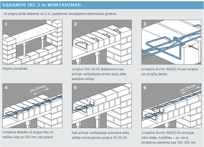 Plytinės sąramos. Statmenasis dėjimas. Angų iki 2 m konstrukcinis sprendinys