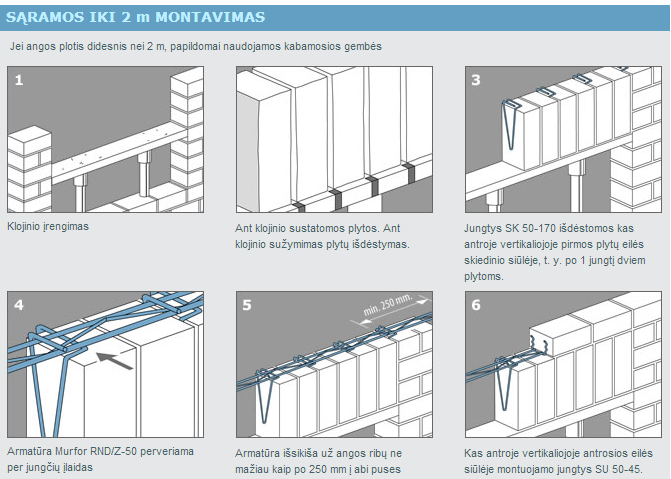 Plytinės sąramos. Vertikalusis dėjimas. Angų iki 2 m konstrukcinis sprendinys
