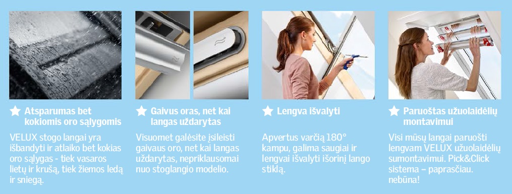 Šie langai ne tik turi visas esmines funkcijas, tačiau suteikia ir galimybę rinktis: valdomi viršutine arba apatine rankena, mediniai ar priežiūros nereikalaujantys su poliuretano danga. Šių stogo langų konstrukciją patobulinome:įrengtos ThermoTechnology™ sistema bei papildoma tarpinė, todėl pagerėjo lango sandarumas, garso izoliacija bei atsparumas nepalankioms oro sąlygoms.